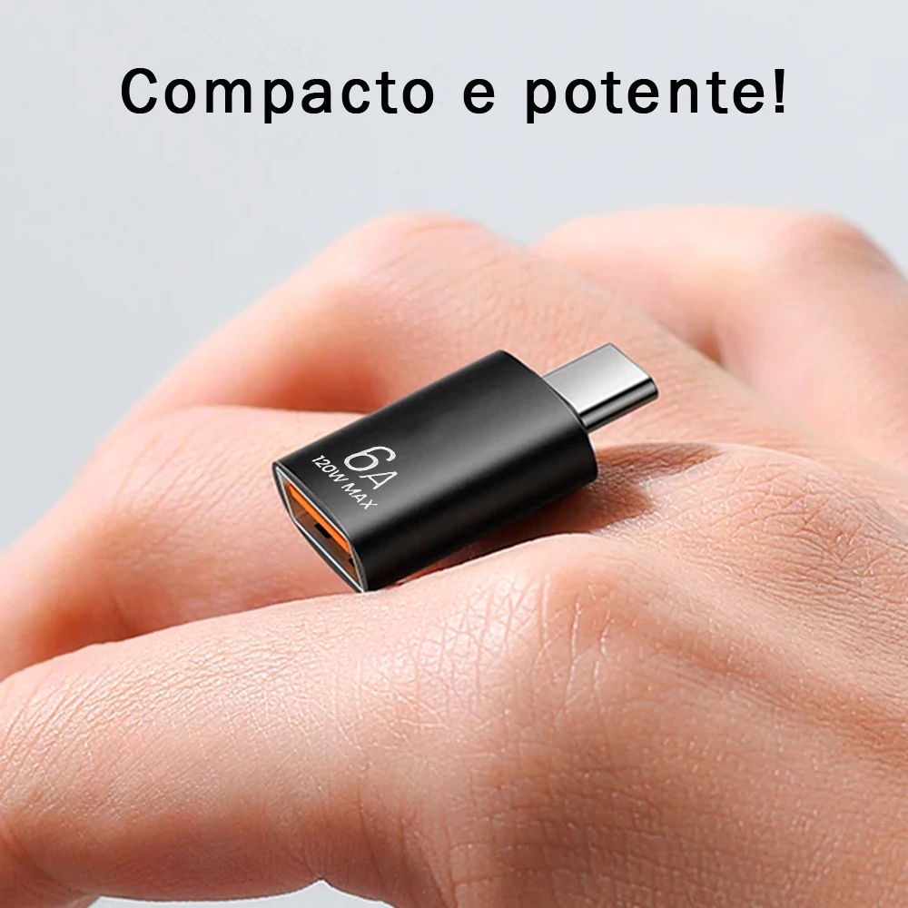- 1x Adaptador USB-A Fêmea para USB-C Macho 120W 6A em Liga de Zinco