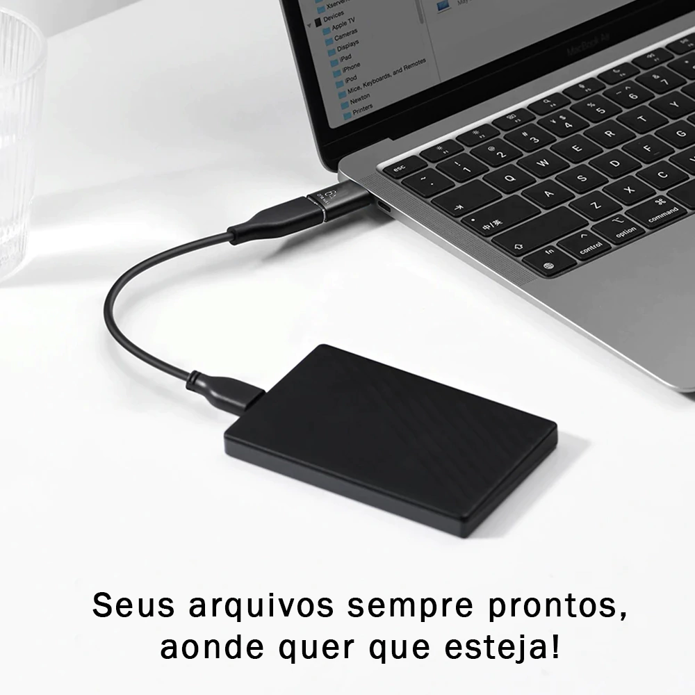 Funcionalidade OTG Completa: Suporta a tecnologia On-The-Go (OTG). Conecte facilmente pendrives, mouses, teclados, HDs externos e outros periféricos USB-A ao seu smartphone ou tablet USB-C, transformando seu dispositivo móvel em uma estação de trabalho completa.