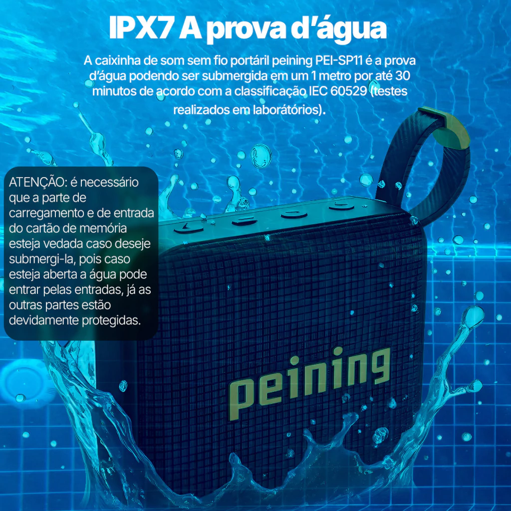 Se você gosta de curtir suas músicas onde estiver, com qualidade, estilo e sem complicação, a Caixa de Som Bluetooth Peining PEI-SP11 é a escolha perfeita para acompanhar o seu dia a dia. Compacta, leve e totalmente portátil, ela foi feita para estar com você em qualquer momento, desde aquele encontro com os amigos até um dia relaxante na praia ou na piscina, já que conta com proteção IPX7 à prova d’água para você curtir sem preocupação até mesmo em ambientes com respingos e imersão rápida. O som é potente, limpo e envolvente, com graves reforçados que deixam qualquer playlist muito mais viva e animada. E para completar a experiência, a iluminação RGB dá um toque moderno e vibrante, criando um clima ainda mais especial, seja para festas, treinos ou momentos de descanso. A conexão Bluetooth garante praticidade total, funcionando com seu celular, tablet ou notebook sem fio e sem complicação. Prática, versátil e cheia de personalidade, essa caixa de som foi pensada para quem gosta de liberdade, estilo e boa música sempre por perto. Escolha a Peining PEI-SP11 e eleve suas experiências sonoras para outro nível com muito mais diversão, qualidade e resistência.
