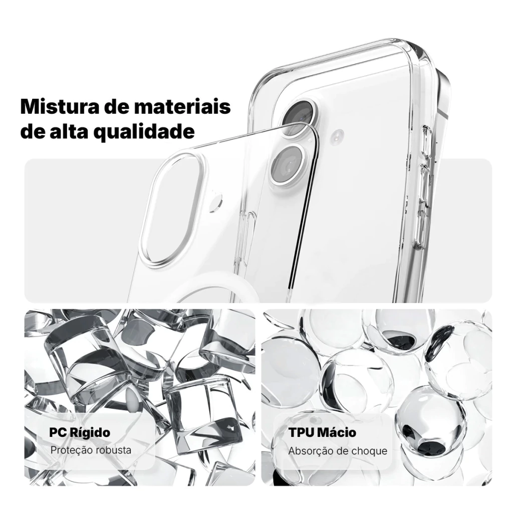 A Capa para iPhone 17 WiWu Dynamic Pro Magnética Transparente combina proteção avançada com um visual elegante e discreto. Produzida com a mistura de TPU flexível e acrílico rígido, ela garante resistência contra quedas, arranhões e impactos, sem abrir mão da leveza e do conforto ao segurar. Seu material transparente de alta qualidade valoriza o design original do iPhone e conta com resistência contra o amarelamento, mantendo a capa sempre cristalina por muito mais tempo. O sistema magnético embutido proporciona encaixe firme e compatibilidade total com acessórios magnéticos, oferecendo praticidade no dia a dia. Com acabamento sofisticado e proteção confiável, é a escolha ideal para quem quer manter o iPhone seguro, moderno e sempre impecável.