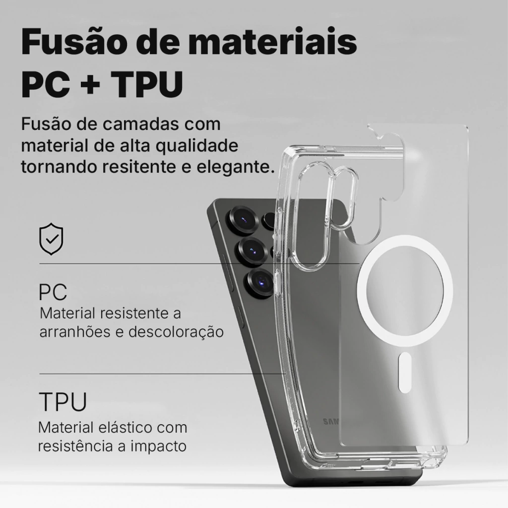- Design moderno e minimalista: mantém a aparência original do Galaxy S, com toque de elegância.