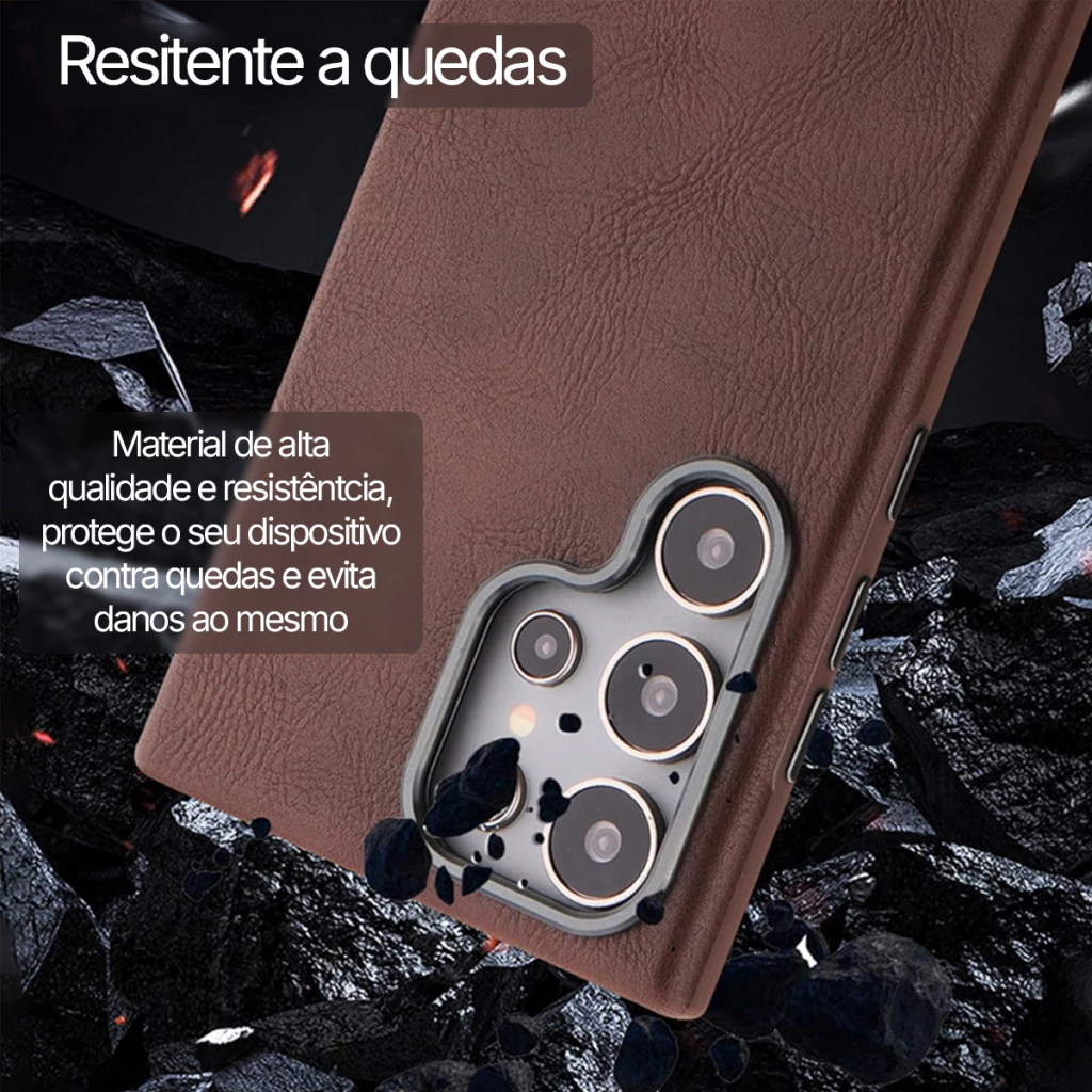 . Design Premium: Feita em Silicone Texturizado como couro, essa capinha combina elegância e toque suave, oferecendo uma aparência sofisticada e confortável além de não escorregar.