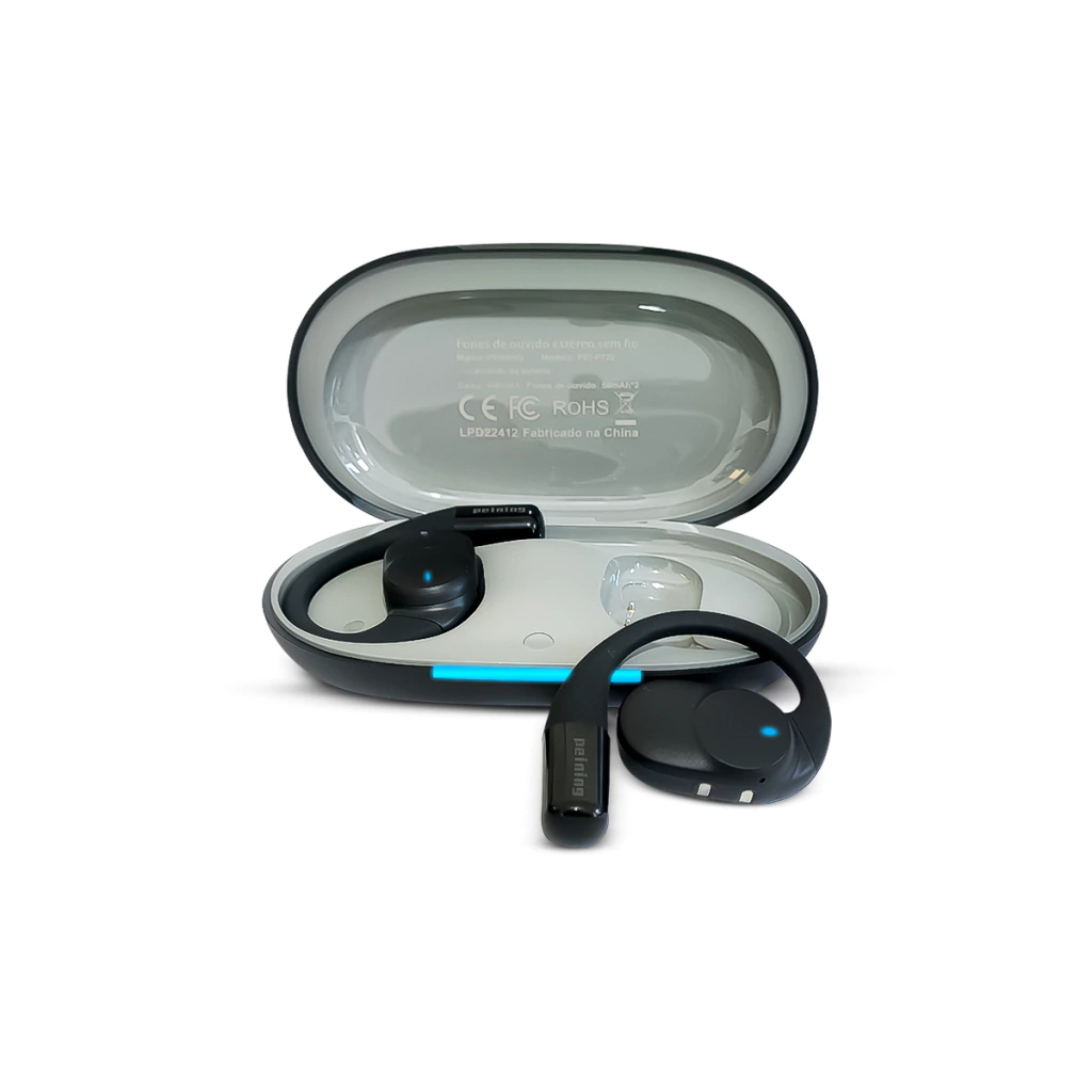 - Design Ergonômico: Aparência moderna inspirada em fones de condução óssea, oferecendo conforto e fixação ideal para uso prolongado.
