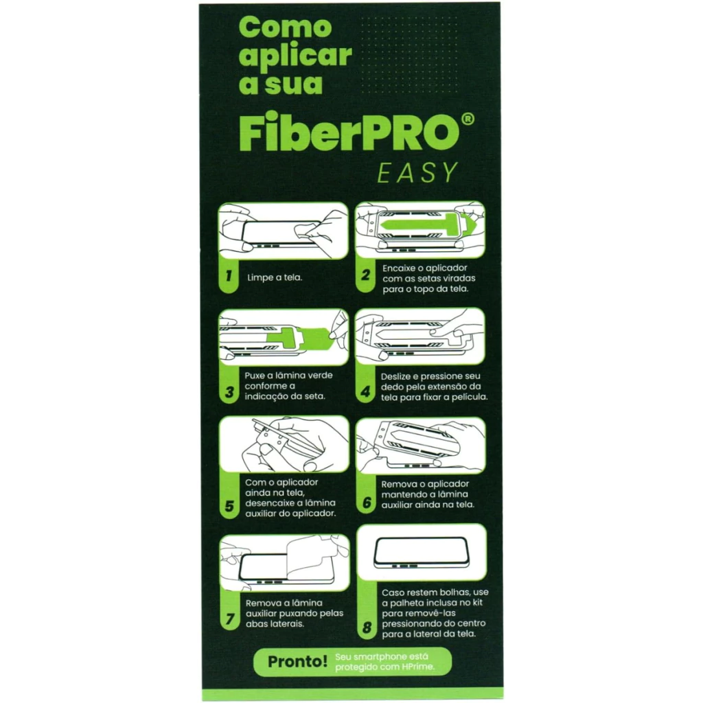 As Películas Premium HPrime são a melhor opção para a proteção da tela do seu aparelho. Produzidas com matéria prima de 1ª qualidade importada do Japão, elas são extremamente resistentes e não interferem na sensibilidade do touchscreen. Cada película é milimetricamente projetada para ter um encaixe perfeito no aparelho desejado. Com aplicador incluso, a Película Fiberpro Easy da HPrime oferece uma aplicação prática e precisa, unindo tecnologia e facilidade para um acabamento impecável.