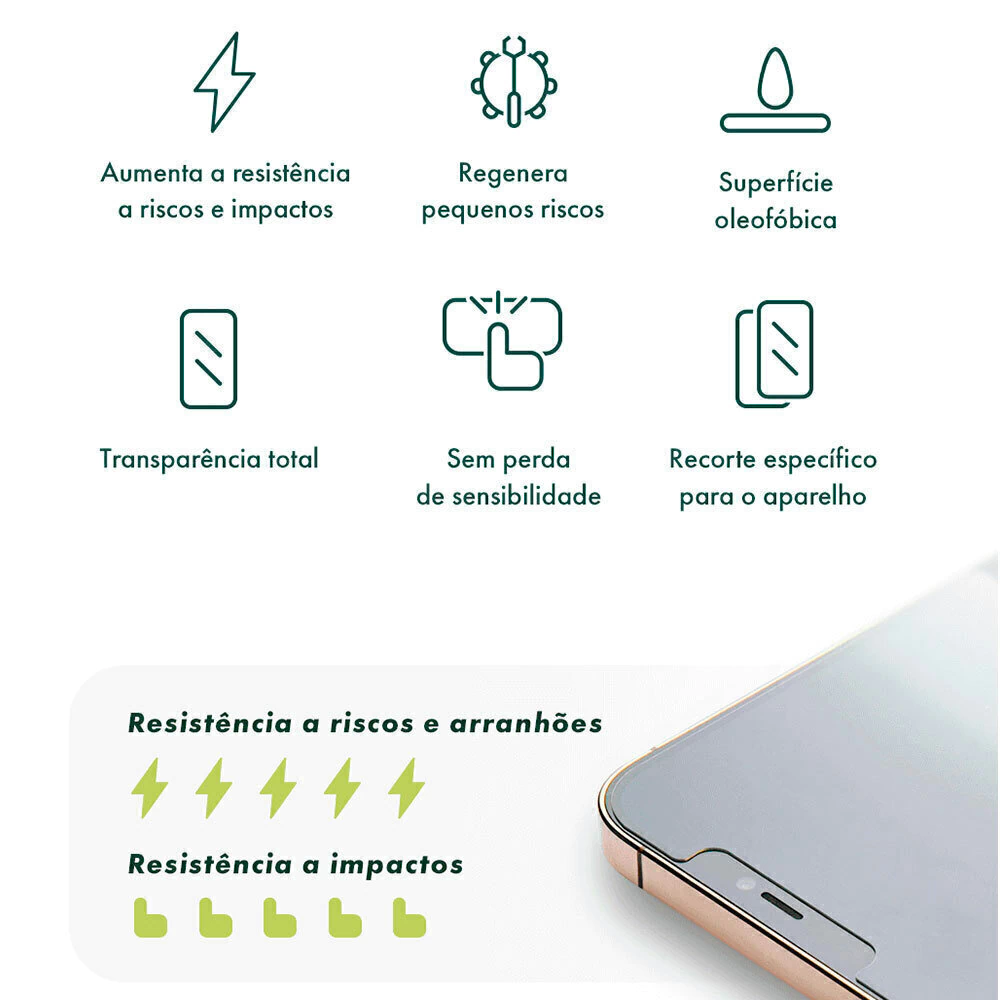 Linha é HPrime Nanoshield proteção para tela frontal, com tecnologia que não interfere na digital.