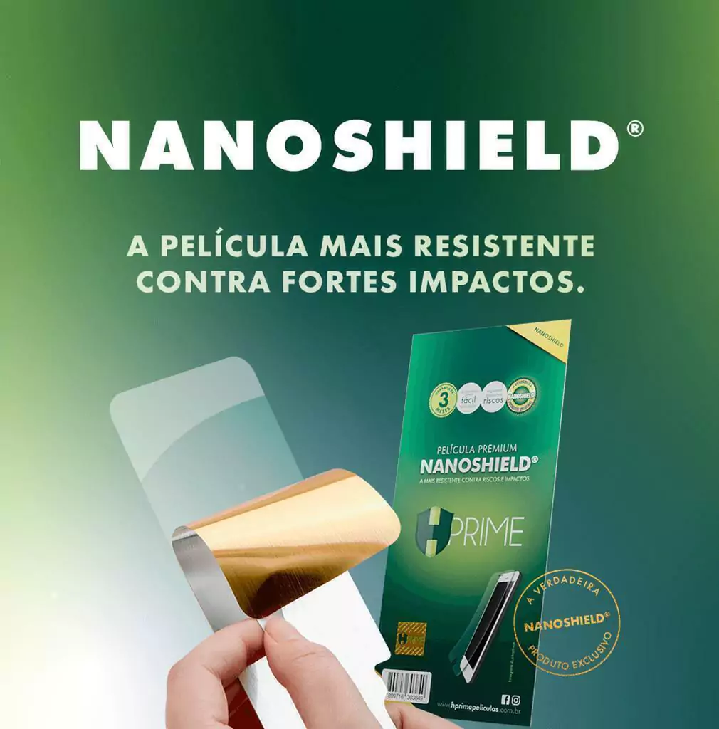 Com o uso de nanotecnologia, a NanoShield® possui camada de auto reparo, que se recupera de pequenos riscos em instantes, além de possuir a mesma proteção contra impactos do que o Vidro Temperado HPrime de 0,33mmm com o diferencial de que não se quebra ao receber fortes impactos.