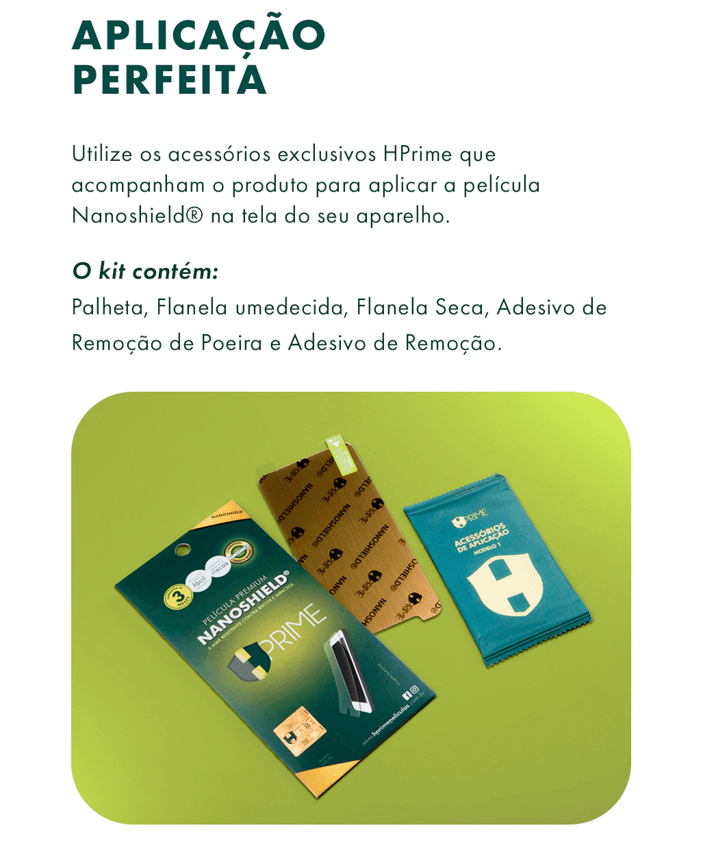 A tecnologia inovadora e exclusiva da Película Premium NanoShield® HPrime oferece a melhor proteção para telas de smartphones e tablets. Com o uso de nanotecnologia, a NanoShield® possui camada de auto reparo, que se recupera de pequenos riscos em instantes, além de possuir a mesma proteção contra impactos do que o Vidro Temperado HPrime de 0,33mmm com o diferencial de que não se quebra ao receber fortes impactos.