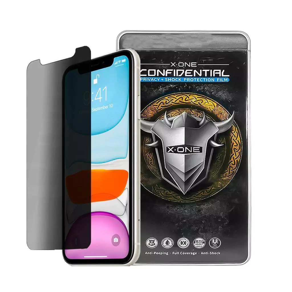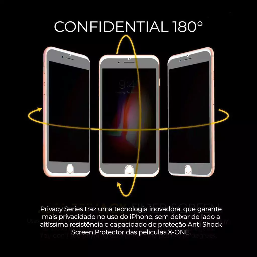 A película de proteção Confidential 180° - Privacy Series traz uma tecnologia inovadora, que garante mais privacidade no uso do iPhone, sem deixar de lado a altíssima resistência e capacidade de proteção Anti Shock Screen Protector das películas X-ONE.