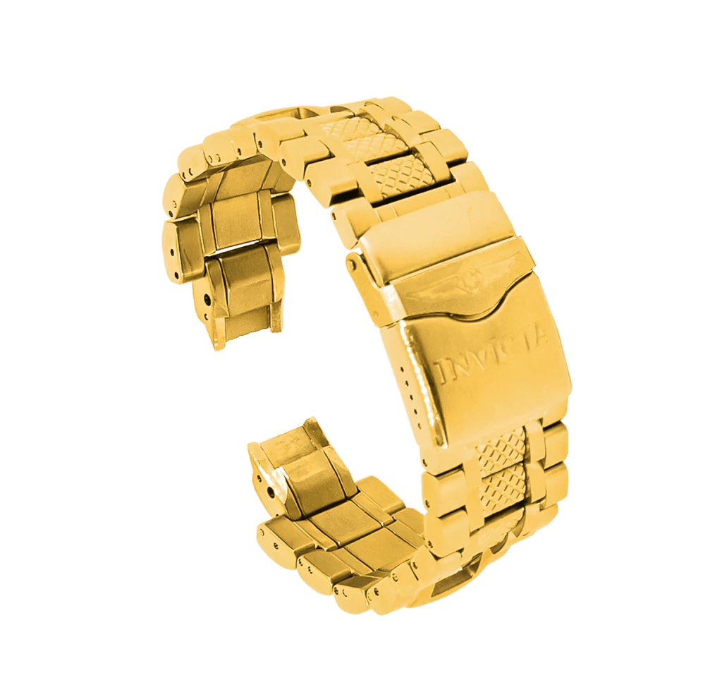 Renove o visual do seu Invicta Subaqua Noma V com esta pulseira de aço inoxidável dourado, projetada para manter o estilo imponente e a durabilidade que o seu relógio merece.