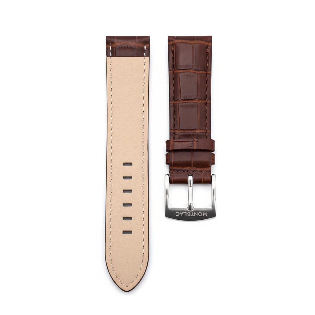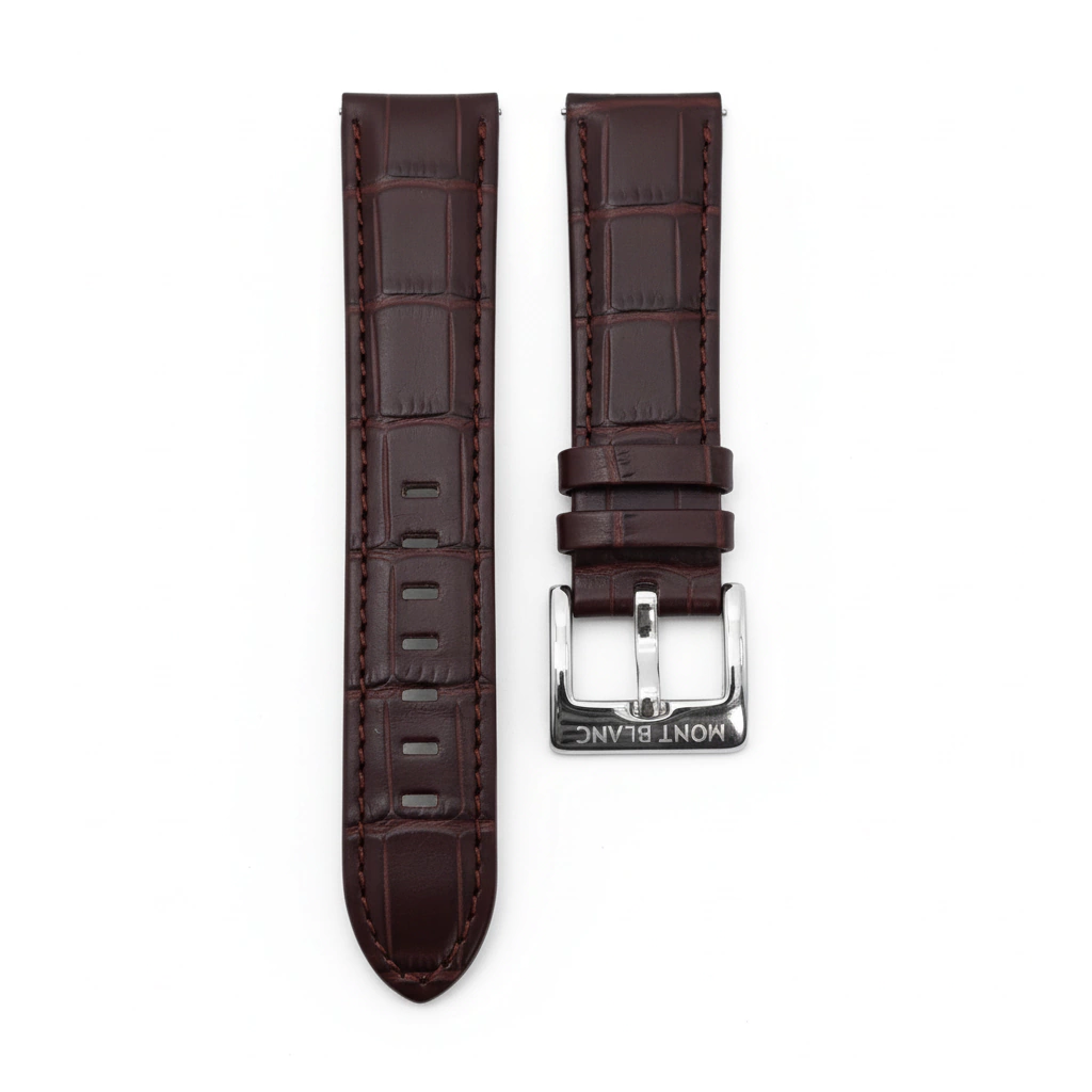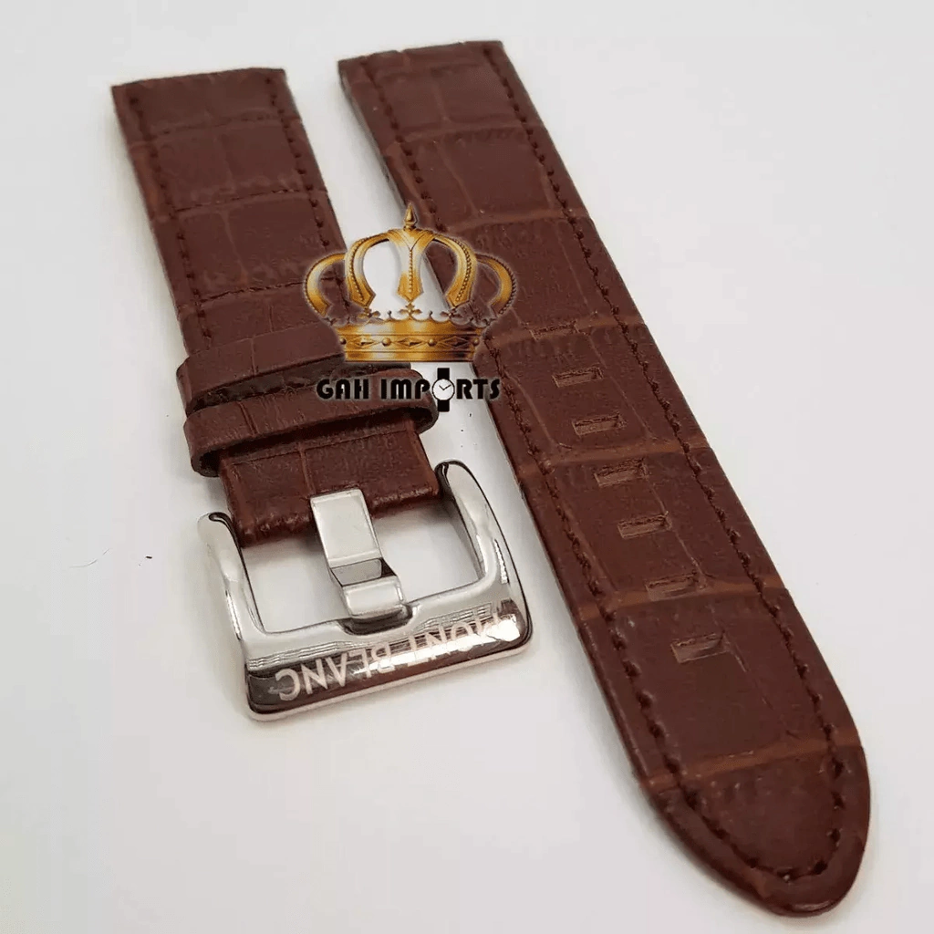 Pulseira Para Mont Blanc Couro Marrom Com Fivela Prata 24mm .