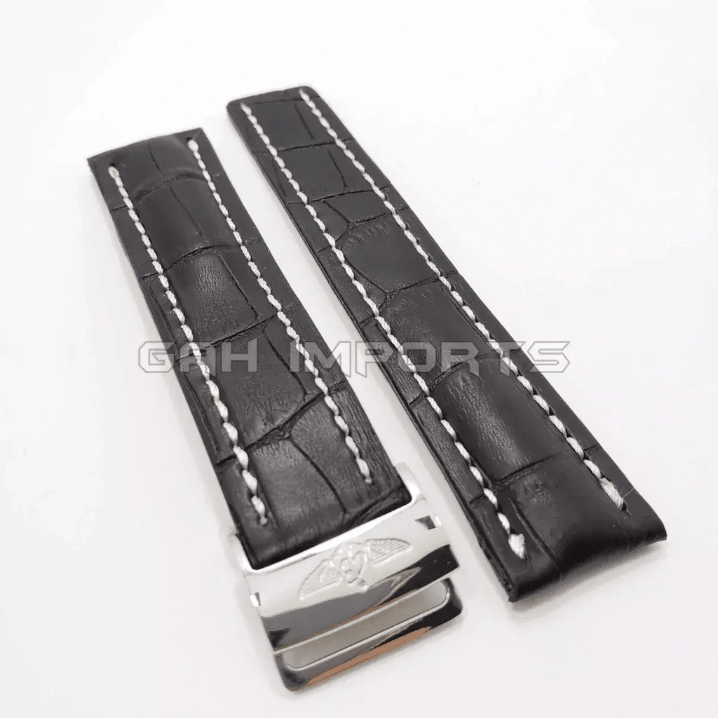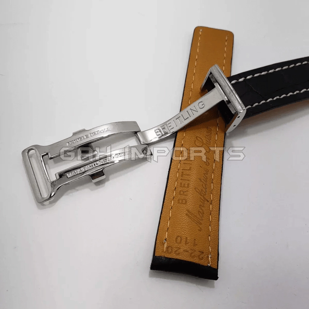 Pulseira Para Relógio Breitling Em Couro Preto Com Fecho Deployant .