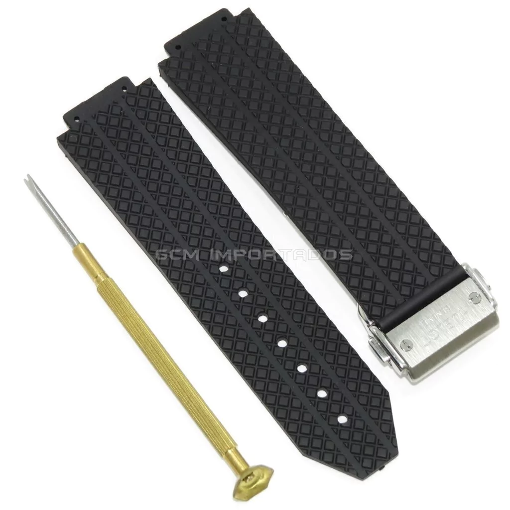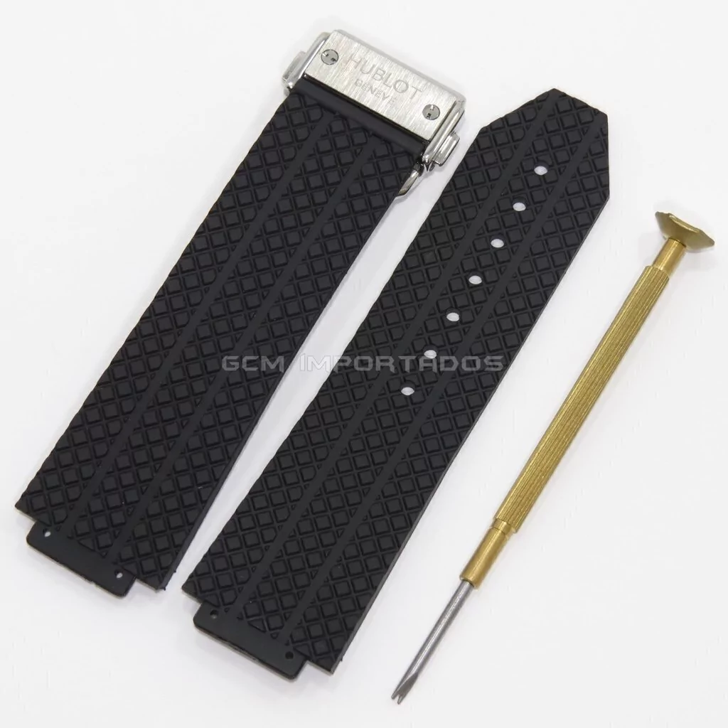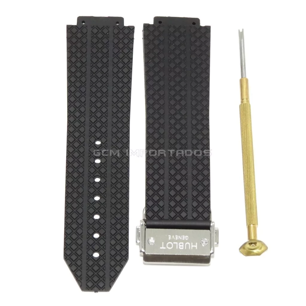 Pulseira Para Relógio Hublot Big Bang Pneu Preto Completa Com Fecho Prata + Chave H