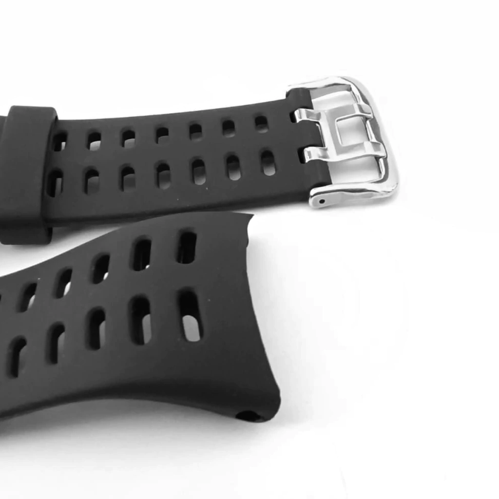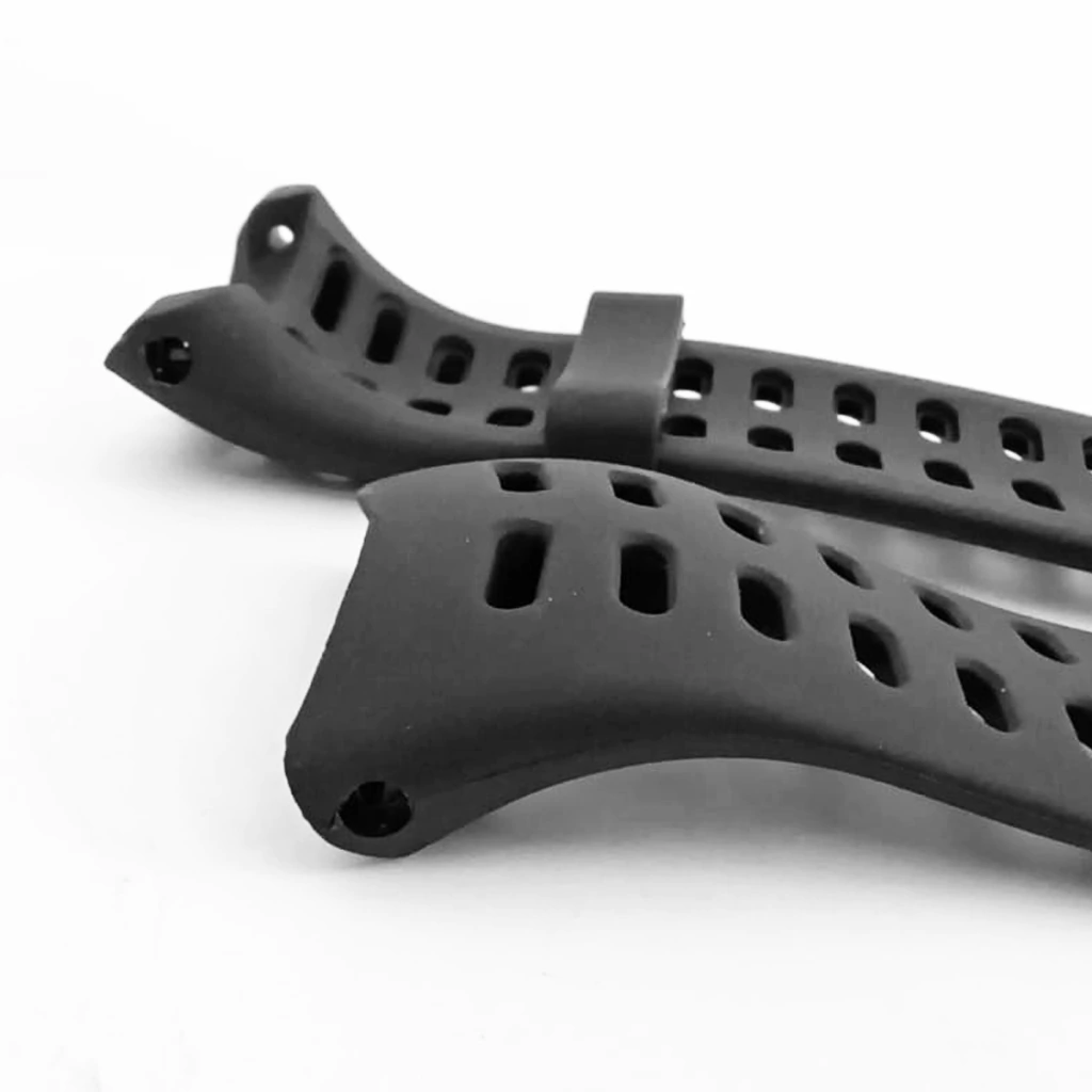 Material Premium e Durável: Fabricada em Borracha ou Resina PU/Silicone de alta qualidade, é macia, flexível e totalmente À Prova D'Água (Resistente a submersão e suor). A fivela é feita de Aço Inoxidável, garantindo resistência à corrosão e fechamento seguro.